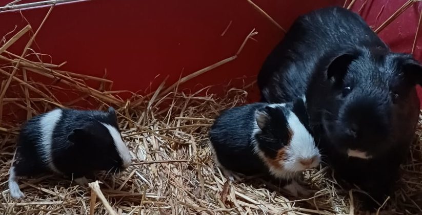 Nourrissage des animaux (cochons d’Inde et poules) avec les déchets organiques du pique-nique.